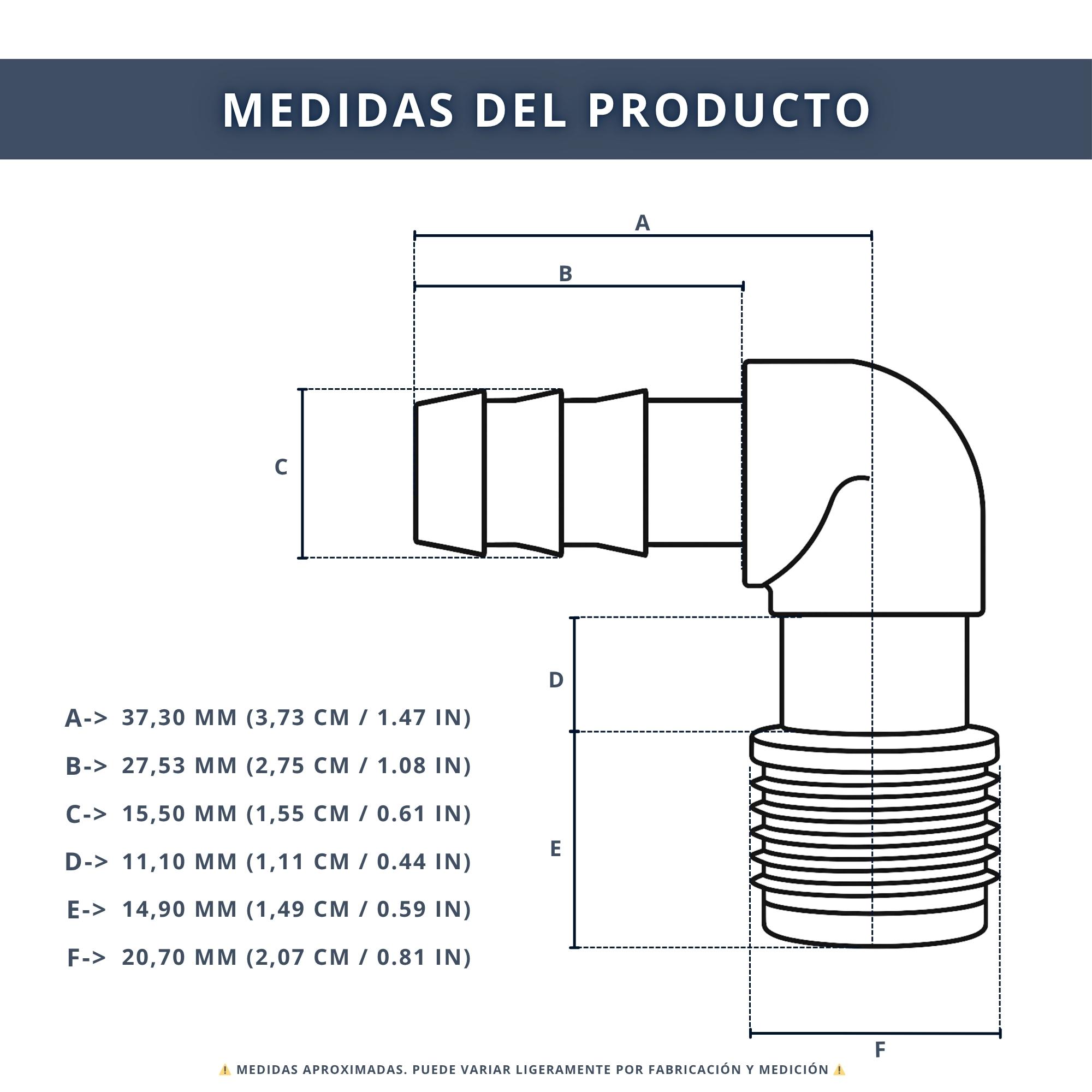 - 🔗 Conexión segura: une rosca 1/2″ y manguera 16 mm con sellado firme y sin fugas.