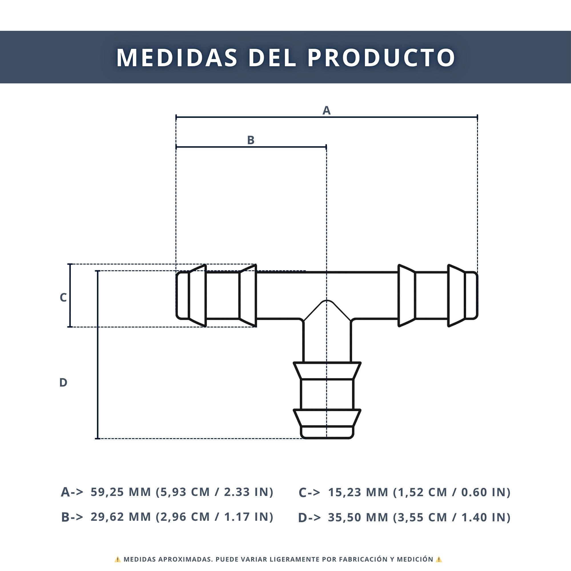 - 🔗 Unión en T: tres salidas a manguera de 16 mm
