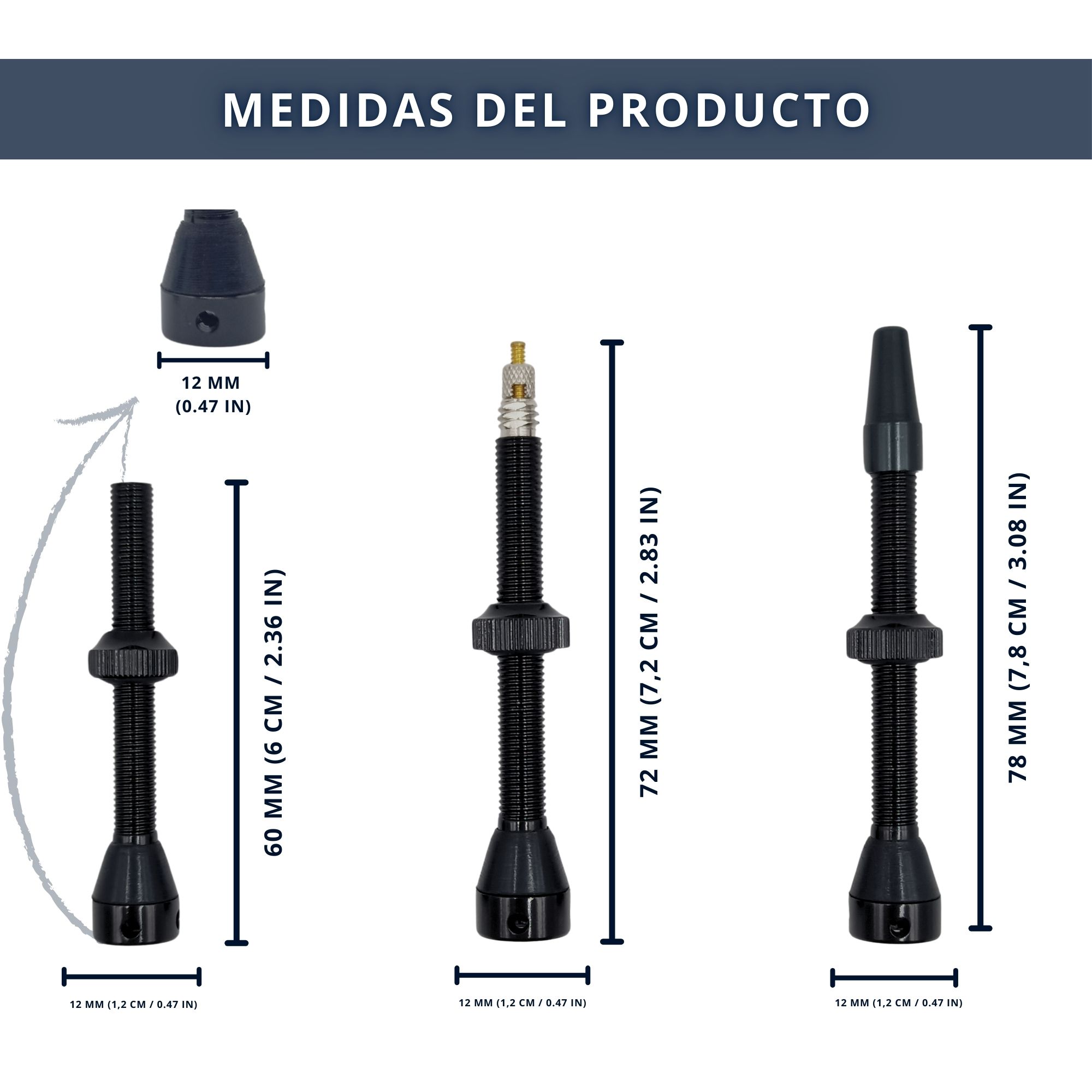 - Largo Válvula Con Obús: 7,2 cm